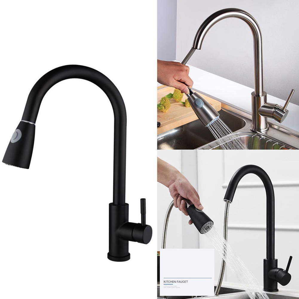 Brushed Nickel Mixer Pull Out Single Hole Sink Sprayer Kitchen Faucet Shopee Indonesia